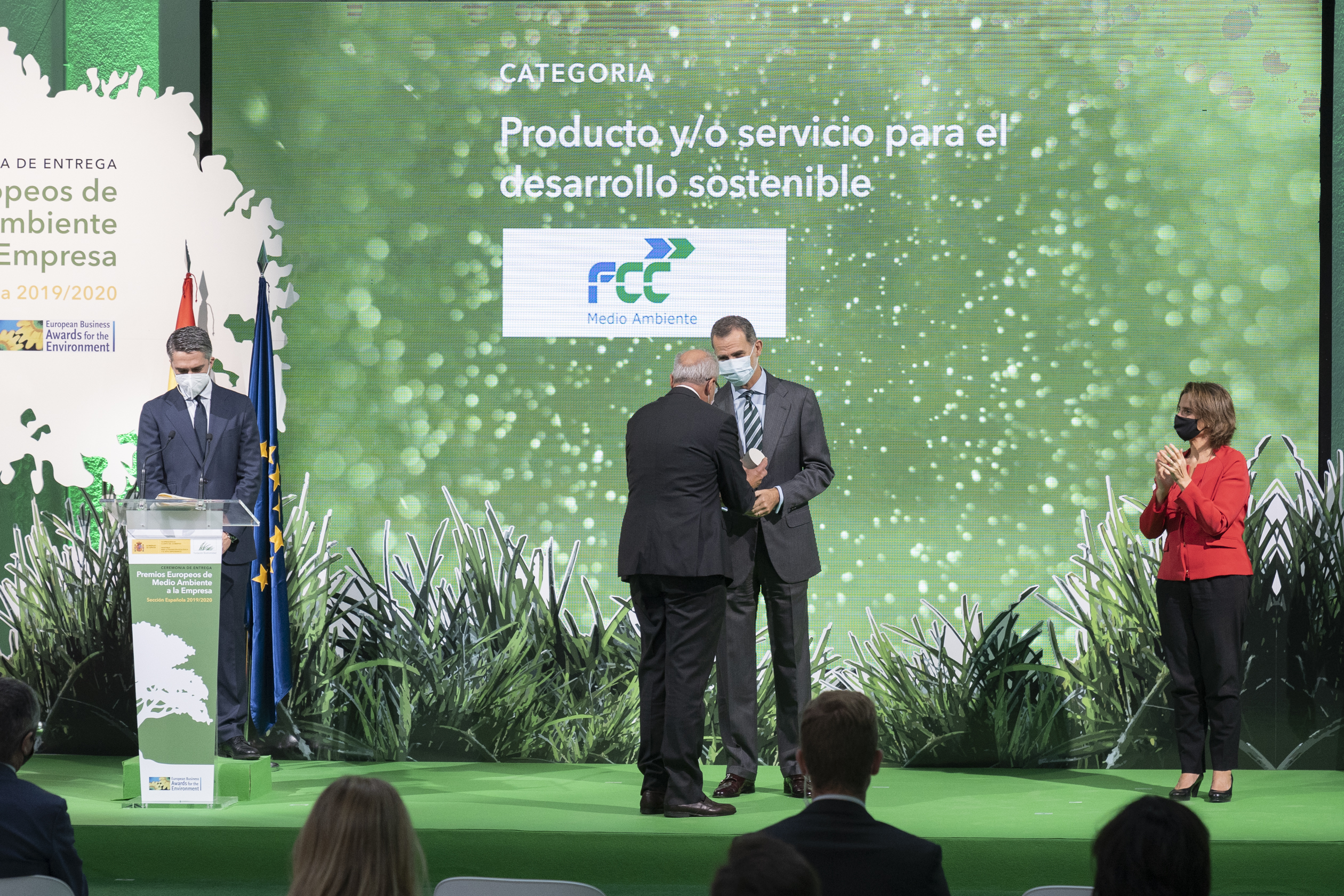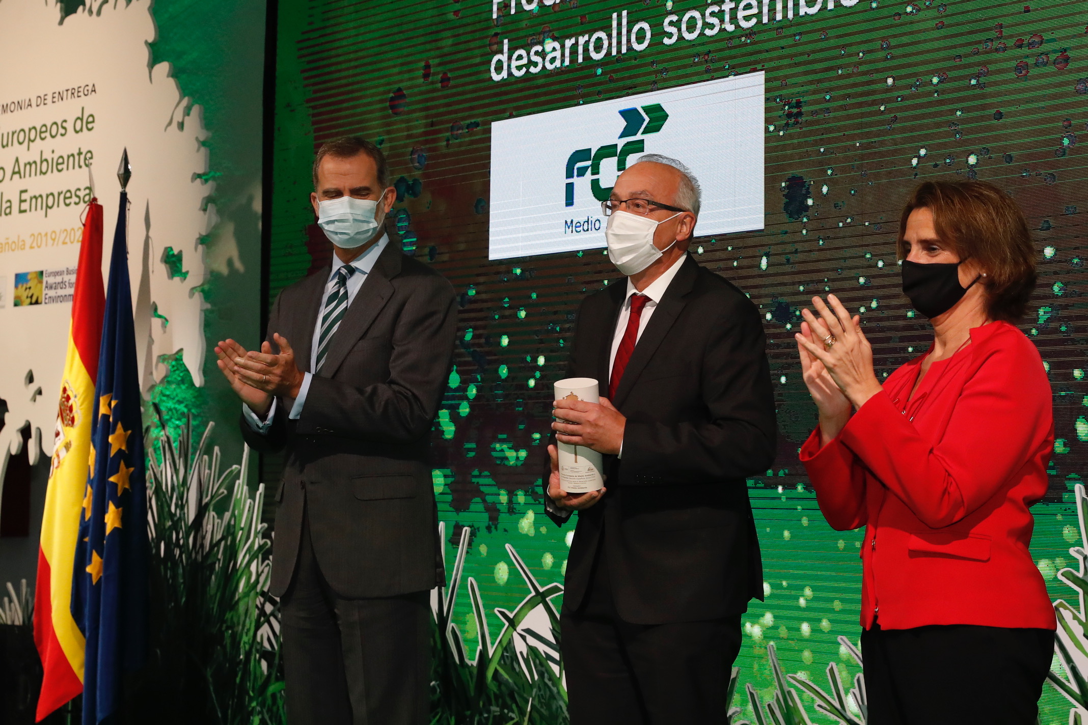 The award ceremony, that took place this Wednesday in the "Rastro Madrid" location, was chaired by His Majesty the King Felipe VI, who emphasized in his message that this award shows the commitment of Spanish companies, a fundamental element for development and innovation, in facing the challenge of the ecological transition; as well as the importance of companies being able to meet the needs of current generations without compromising the future of upcoming generations. Ms Teresa Ribera, Vice-President of the Spanish Government and Minister for Ecological Transition and Demographic Challenge, introduced the event and welcomed the participants. The Minister highlighted the essential fact that there are aware companies that know how to combine their productive activity with the respect for the environment. Jordi Payet, CEO of FCC Medio Ambiente, was responsible for collecting the award from His Majesty.