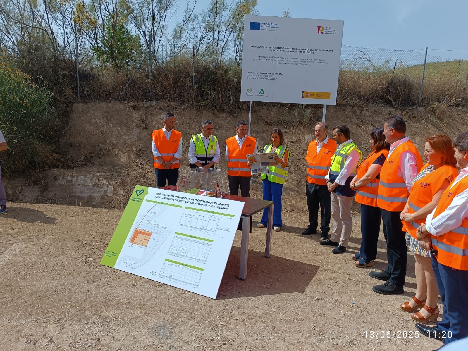Last Friday, 13th June, the groundbreaking ceremony took place for the new pre-treatment line for selectively collected biowaste at the Granada Ecocentral, located in the municipality of Alhendín. The event was led by the President of the Provincial Council of Granada, Francis Rodríguez, the Regional Councillor for Sustainability and Environment of the Government of Andalusia, Catalina García, accompanied by the Mayor of Alhendín, Jorge Sánchez, and FCC Medio Ambiente's CEO, Francisco Javier Irigoyen.